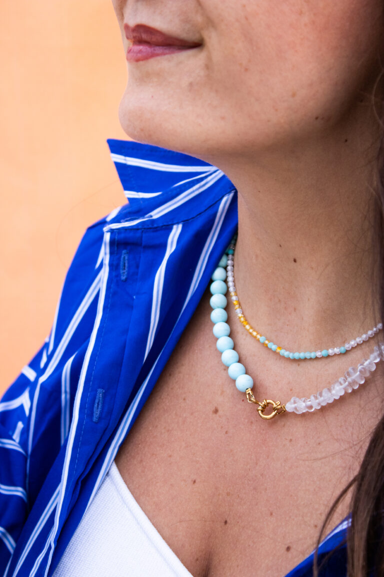 Aujourd’hui j’ai la conviction que les bijoux permettent d’exprimer qui on est, d’apporter ce détail précieux à vos tenues et d’affirmer votre style. L’univers d’Océa est representé par un style bohème se mariant joliment avec une touche chic contemporaine. Un esprit de voyage nomade avec des pierres semi- précieuses telle que l’amazonite, la turquoise et l’agathe.