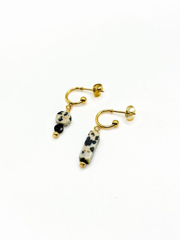 Boucles d’oreilles Asymétrique en Jaspe Dalmatien,