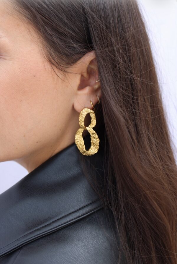 La maille revisité de manière moderne, des boucles d’oreilles légère avec du cachet en acier inoxydable