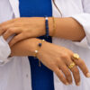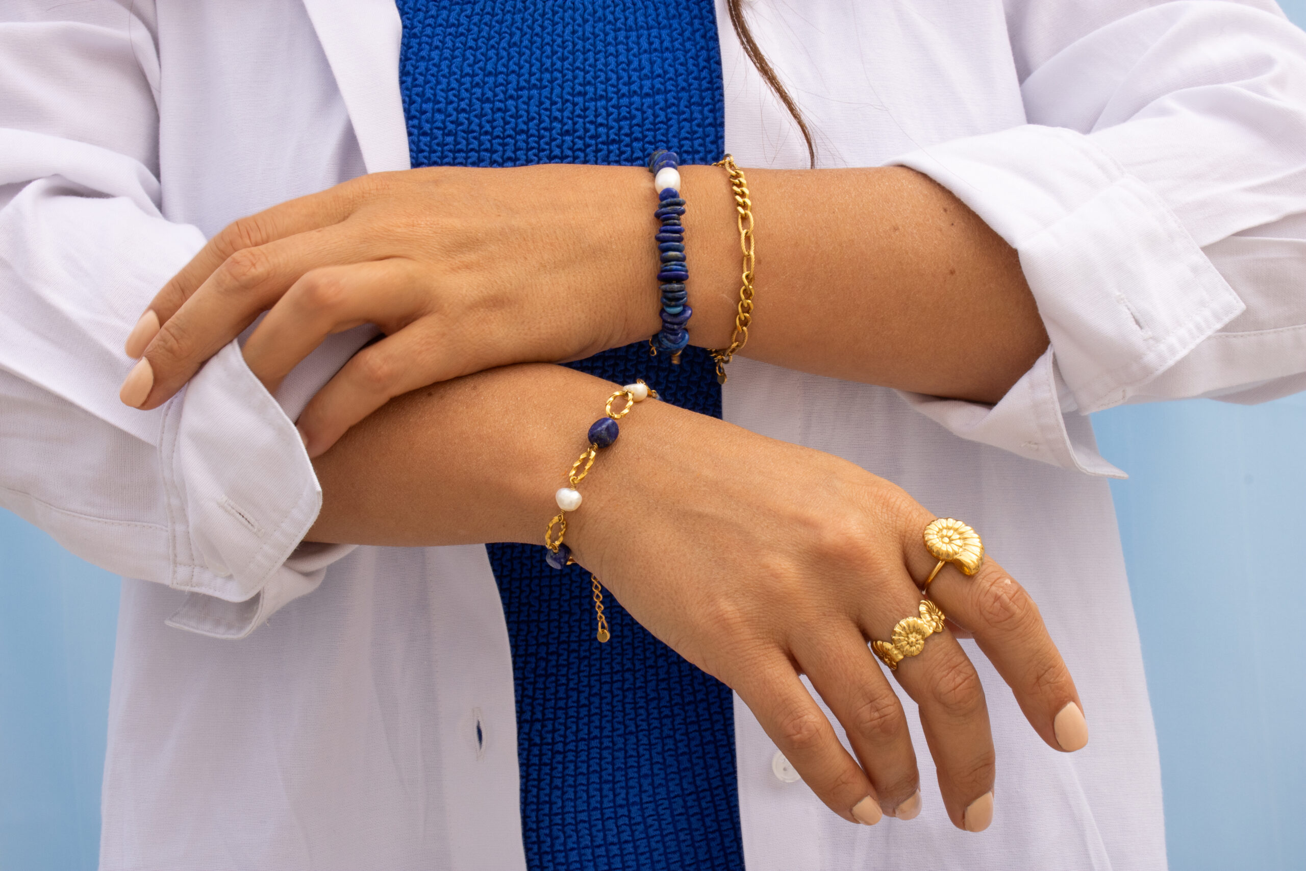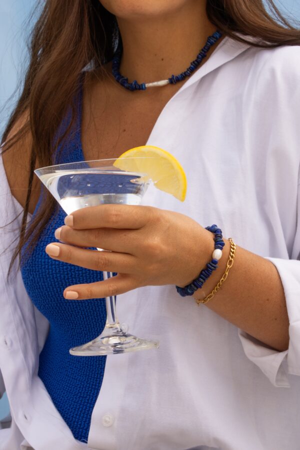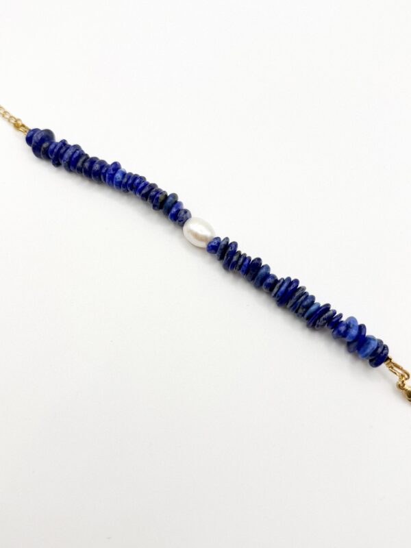 Un bracelet qui invite au voyage, associant la profondeur du Lapis Lazuli à l’élégance d’une perle de culture. Un bijou de caractère au airs d’évasion et d’horizons lointains.