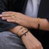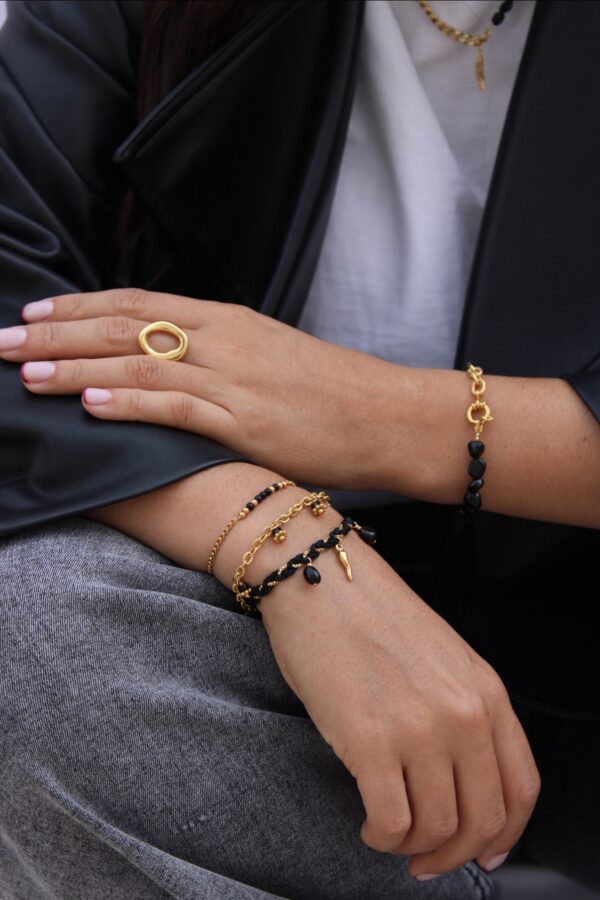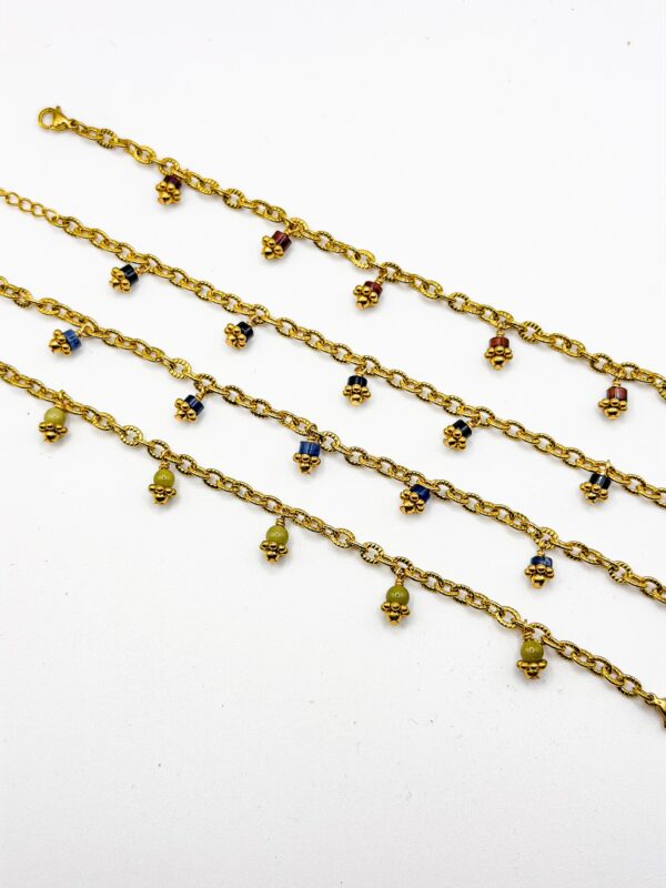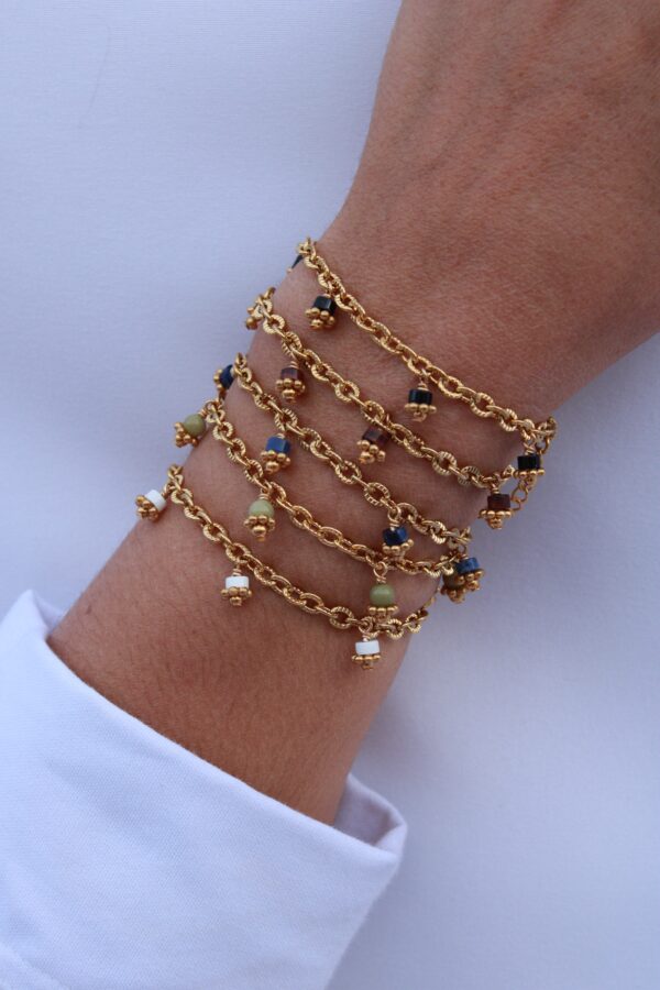 Bracelet Floria, rythmé par les pampille de pierres naturelles il apporte une belle présence porté seul ou en accumulation.