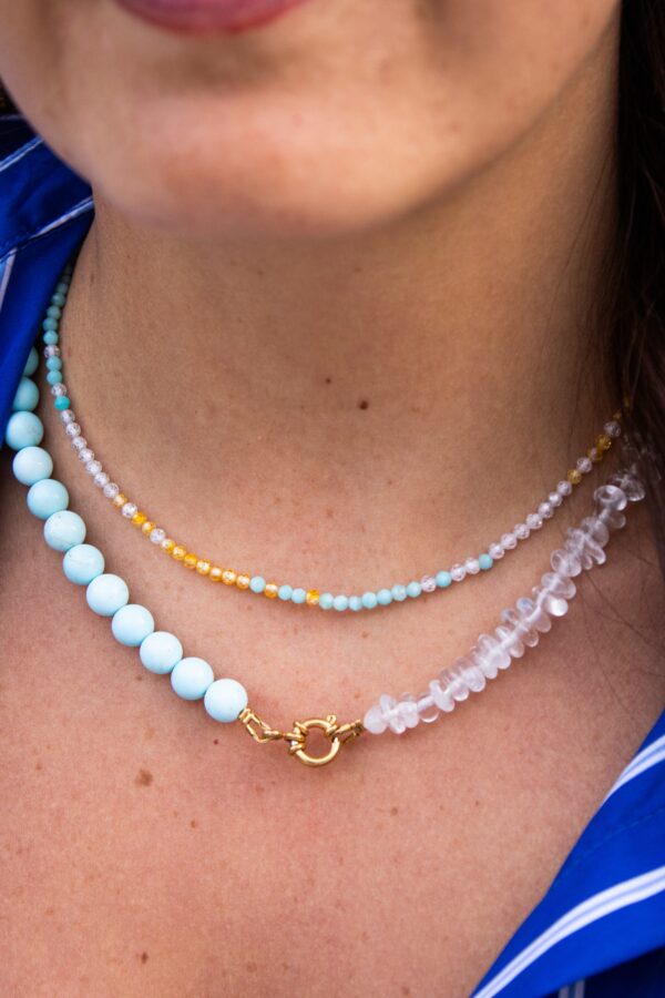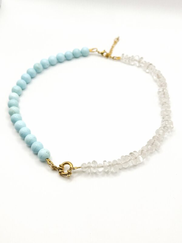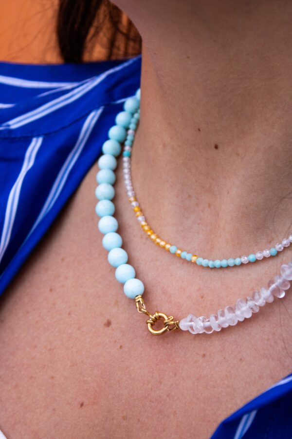 Ce collier asymétrique bouscule les codes avec subtilité. Les perles se répondent dans un jeu de contraste et d’équilibre. Une pièce originale, moderne et légèrement décalée, pensée pour apporter couleur, caractère et un grain de folie à votre quotidien
