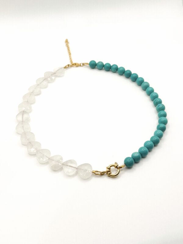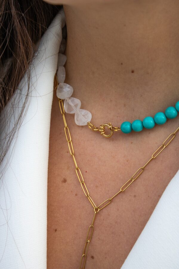 Ce collier asymétrique bouscule les codes avec subtilité. Les perles se répondent dans un jeu de contraste et d’équilibre. Une pièce originale, moderne et légèrement décalée, pensée pour apporter couleur, caractère et un grain de folie à votre quotidien