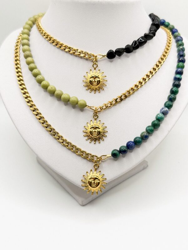 Vert matcha ( Jaspe ), Bleu ( Malachite Azurite ), Noir ( Onix )